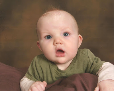 Every two months I go get ammons pictures taken at jc pennys and everytime I go Ammon will NOT smile in his pictures. He just stares at the camera with a "durrrrrr" look on his face. These are his 4 month pictures. For some reason I can't upload his 2 month ones but he's not smiling in those either :)